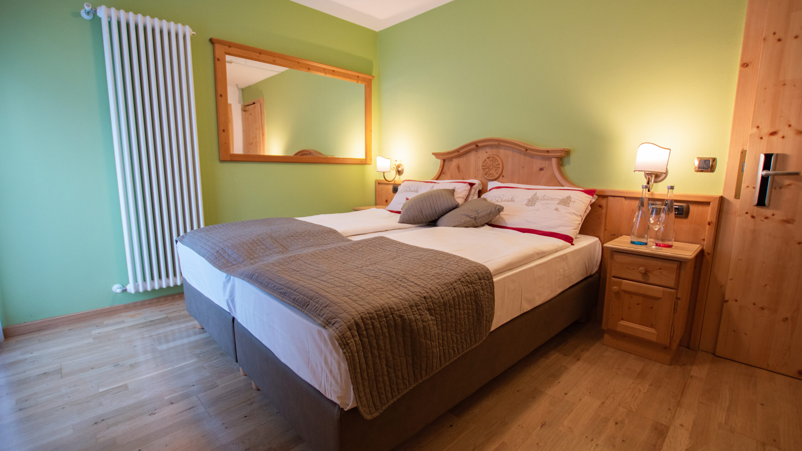 La Camera Classic presso l’Hotel Bellevue accoglie gli ospiti in un ambiente caldo e familiare, arredato con gusto e caratterizzato da una piacevole atmosfera tradizionale. Dotata di tutti i comfort essenziali, questa camera offre un rifugio accogliente dopo una giornata trascorsa a esplorare le meraviglie di Canazei. Un luogo dove sentirsi a casa, immersi nell’incanto delle Dolomiti.
